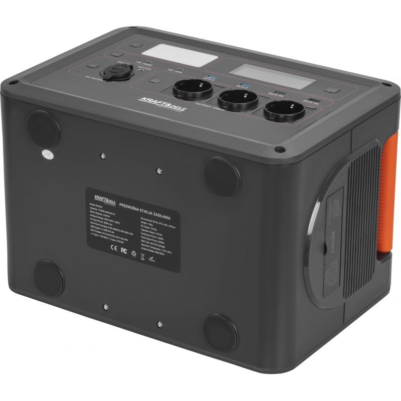 Seade on varustatud võimsa 1152 Wh LiFePO4 akuga, mis tagab pika tööea ja kõrge tööstabiilsuse. Esipaneelil olev selge LED-ekraan võimaldab jälgida aku taset, sisend- ja väljundvõimsust ning aktiivseid funktsioone. Jaamal on lai valik väljundeid – kolm 230 V vahelduvvoolu pistikupesa, USB-pordid, QC 3.0 kiirlaadimine, kaks C-tüüpi porti ja alalisvoolu väljundid, mis võimaldavad teil toita mitut seadet samaaegselt. Lisaks saab seadet laadida vooluvõrgust, autost või päikesepaneelidest tänu XT60 sisendile MPPT toega, mis tagab maksimaalse päikeselaadimise efektiivsuse.