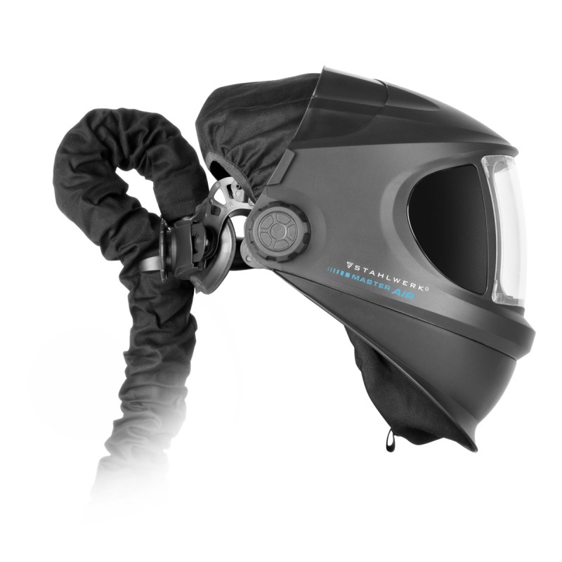 STAHLWERK MASTER AIR automaatne keevitusmask on esmaklassiline keevitusmask, millel on integreeritud hingamisteede kaitsesüsteem ja P3 osakeste filter vastavalt filtri kaitseklassile TH3 P R SL. PAPR-süsteem koos 3-ühes kaitsekiivriga tagab keevitamise ajal maksimaalse ohutuse ja mugavuse. Intelligentne õhufiltreerimine integreeritud juhtmooduliga tagab stabiilse ja ühtlase õhuvarustuse kolmes etapis: 170 l/min, 200 l/min ja 230 l/min. Värske õhu seadme 14,8 V liitiumioonakut saab mugavalt laadida kaasasoleva toiteplokiga. Aku vahetamine pole vajalik. Sõltuvalt õhuvoolu kiirusest saab maski kasutada kuni kümme tundi. Tänu visiiri tihendile, kaelakaitsele, näomansetile ja leegikindlale lõuakaitsele jääb mask õhukindlaks, ohutuks ja mugavaks kanda. Automaatne keevitusmask optilise klassiga 1/1/1/1 sobib professionaalseks keevitamiseks, plasmalõikuseks, lihvimiseks ja eraldamiseks. See pakub silmadele ja näole usaldusväärset kaitset leegi, kuumuse, sädemete ja osakeste eest. Tõeliselt värviline filter tagab optimaalse terava nägemise ja suurepärase tõetruu värviedastuse. Neli sõltumatut andurit tagavad automaatse hämardamise ja reguleerimise kohe pärast kaare süttimist. Tänu ümbritseva valguse andurile reguleeritakse tumedusastmeid vastavalt kaare heledusele. Mugava Bluetooth-kaugjuhtimispuldi abil saab arvukalt parameetreid (KEEVITAMINE / LÕIKAMINE / LIHVIMINE / TUME REŽIIM) hõlpsalt valida ilma keevitusmaski eemaldamata. Tumedusastmeid saab režiimist olenevalt reguleerida vahemikus DIN 4 kuni DIN 14 ja neid saab peenhäälestada SHADE-funktsiooni abil. Töömälu salvestab seatud parameetrid. Lühikeste keevitustsüklite jaoks on integreeritud spetsiaalne TACK-režiim. Lisaks saab valgustundlikkust ja viivitust monokroomse LCD-filtrikassetti abil individuaalselt reguleerida. Lukustusseade hoiab ära juhusliku reguleerimise ebamugavates asendites. Ergonoomiline esmaklassiline peapael pakub kõrget mugavust isegi pikkade töötsüklite ajal. Automaatse vaatevälja tumendamise, värvipüsivuse ja intelligentse õhufiltreerimise kombinatsioon võimaldab ohutut ja kontrollitud tööd, muutes selle keevitusmaski süsteemi optimaalseks valikuks professionaalsetele keevitajatele ja nõudlikele käsitöölistele. Esmaklassiline 3-ühes automaatne keevitusmask integreeritud hingamisteede kaitsesüsteemiga ja P3 osakestefiltriga vastavalt filtri kaitseklassile TH3 P R SL.