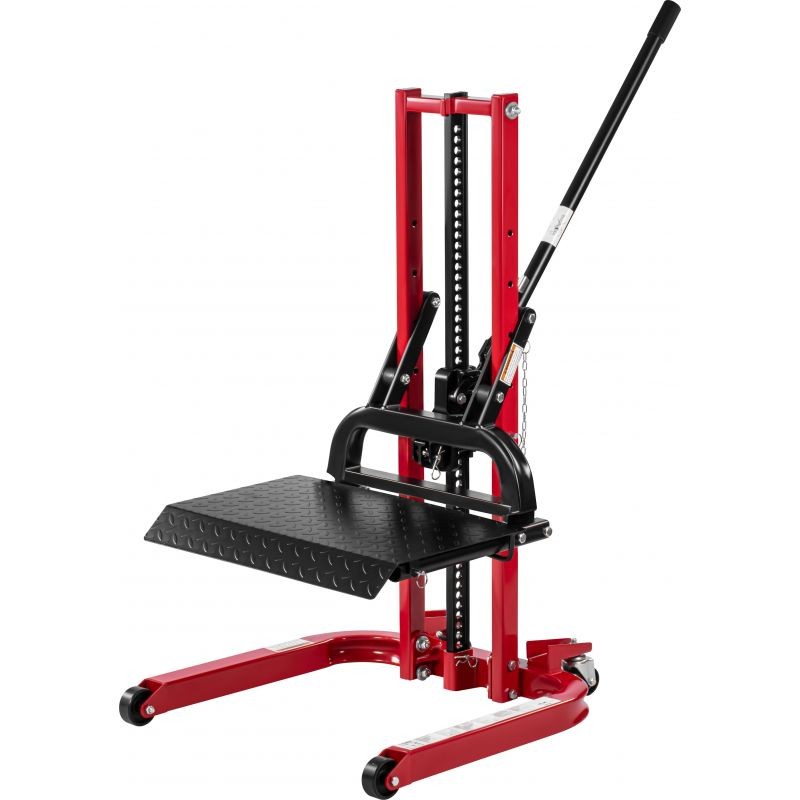 Подъемник не требует стационарного рабочего места — благодаря четырем поворотным колесам, включая два поворотных, его можно легко перемещать и точно устанавливать в нужном месте. Прочная и устойчивая конструкция повышает безопасность работы, а ручной привод делает устройство удобным для повседневного использования.
