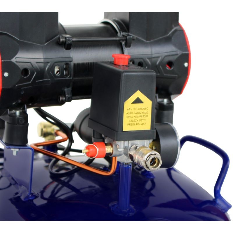Безмасляная конструкция гарантирует подачу чистого сжатого воздуха без необходимости смазки, что крайне важно при работе с пневматическими инструментами, выполнении сервисных работ и везде, где необходимо высокое качество воздуха. Прочные транспортировочные колеса и эргономичная ручка обеспечивают мобильность, делая перемещение компрессора быстрым и легким.