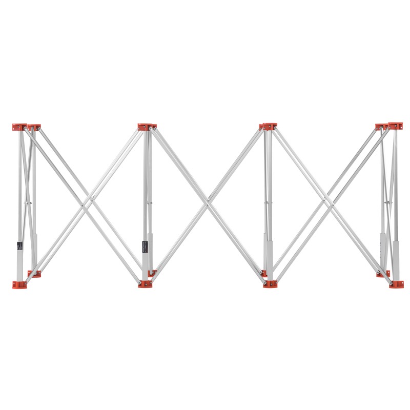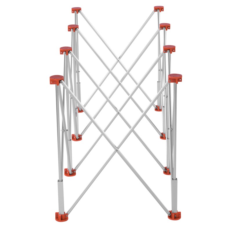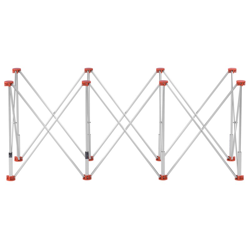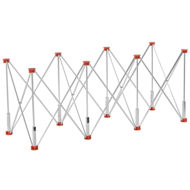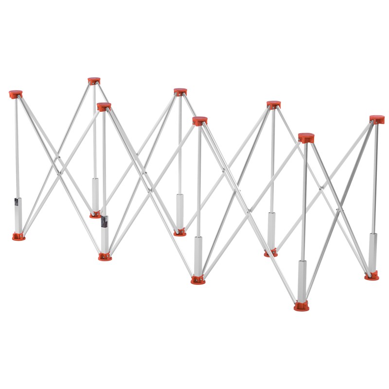 Каркас стола изготовлен из алюминия и прочного пластика, что обеспечивает его лёгкость при высокой прочности и устойчивости. Восемь прочных ножек выдерживают нагрузку до 800 кг, а функция быстрого и лёгкого складывания делает его идеальным вариантом как для стройплощадок, так и для мастерских. В комплект входит сумка для удобного хранения и переноски.