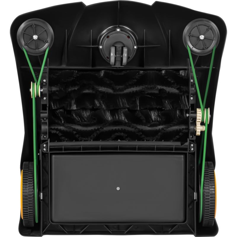 Подметальная машина работает полностью механически — энергия поступает от колес, а рекомендуемая рабочая скорость 5 км/ч обеспечивает максимальную эффективность. Система двойных боковых щеток и центральный сборный модуль эффективно удаляют песок, листья, пыль, гравий и другой мусор. KD5128 также имеет удобную регулировку высоты, прочную ручку и компактную конструкцию, позволяющую легко маневрировать в стесненных условиях.