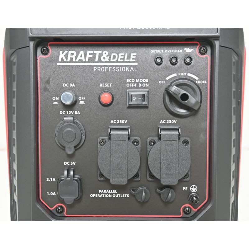 KD3163 — это портативный генератор от KRAFT&DELE, предназначенный для питания инструментов, бытовой техники, туристического снаряжения, освещения, а также в качестве аварийного источника питания во время отключения электроэнергии. Устройство вырабатывает переменный ток напряжением 230 В и подходит для использования везде, где требуется надежный источник питания.