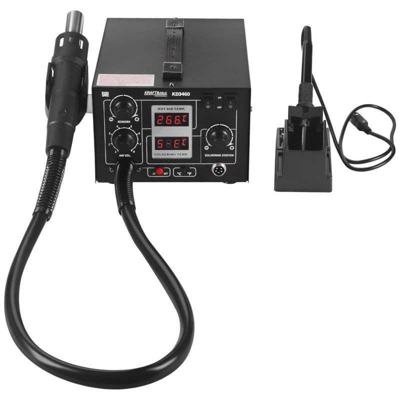 KD3460 — это современная многофункциональная станция для сварки пластика, сочетающая в себе функциональность паяльной станции и станции термовоздушной сварки. Устройство разработано для профессионального сервисного обслуживания, но также подходит для любительских и ремонтных мастерских.