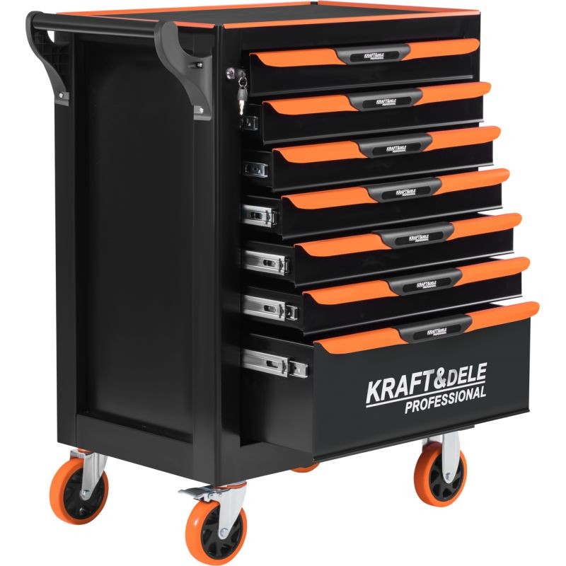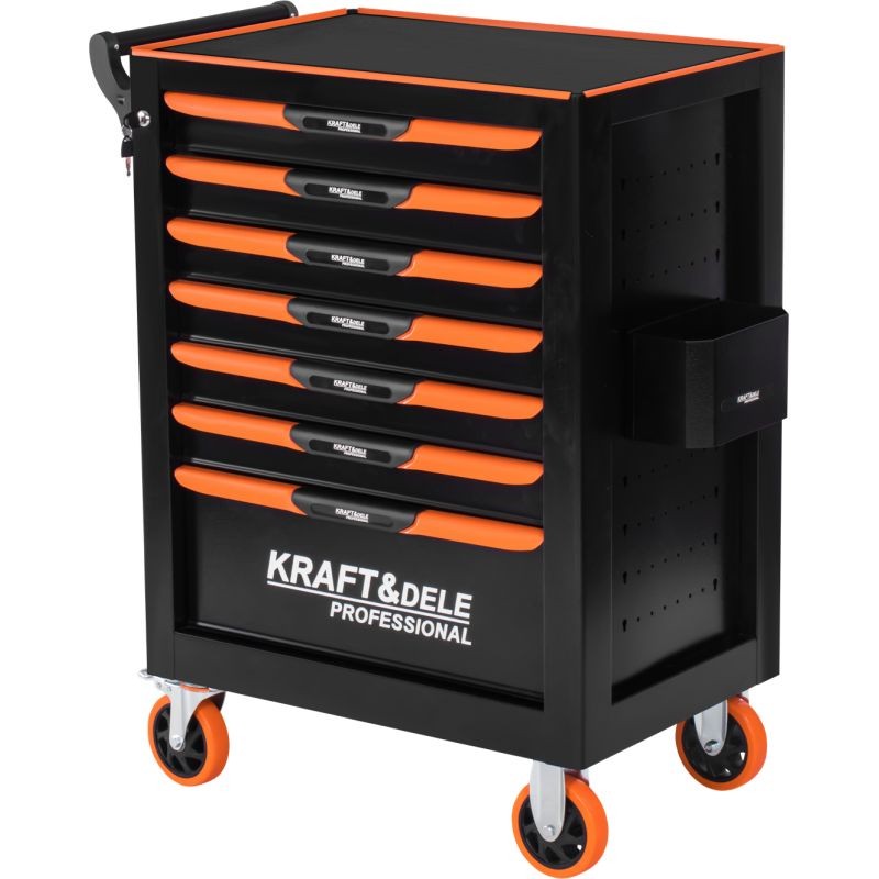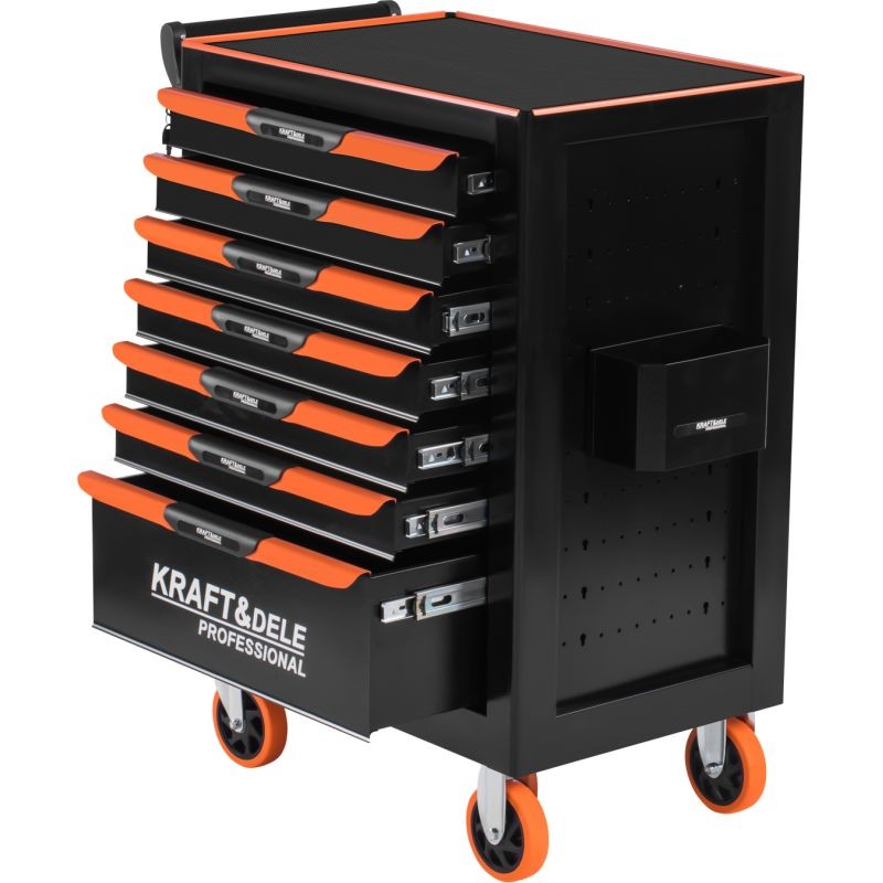 Профессиональный шкаф для мастерской KRAFT&DELE KD1079 — это прочное и функциональное решение для хранения инструментов. Семь вместительных ящиков с поролоновым покрытием обеспечат порядок и сохранность ваших принадлежностей. Благодаря столешнице из стали, устойчивой к повреждениям и воздействию химикатов, и запирающимся роликам этот шкаф идеально подходит для любой мастерской.