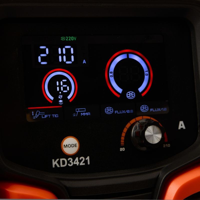 Сварочный аппарат Kraft&Dele KD3421 — универсальный полуавтоматический аппарат, используемый для сварки нержавеющей стали, легированной стали, углеродистой стали, меди и других цветных металлов. Сварочный аппарат имеет однофазное питание и изготовлен с использованием инверторной технологии IGBT. Изделие предназначено для сварки MIG (флюс) в среде защитного газа и для сварки постоянным током (DC) покрытыми электродами. Полуавтоматический сварочный аппарат предназначен для сварки самозащитной проволокой до 0,9 мм, проволокой и покрытыми электродами диаметром до 4 мм.