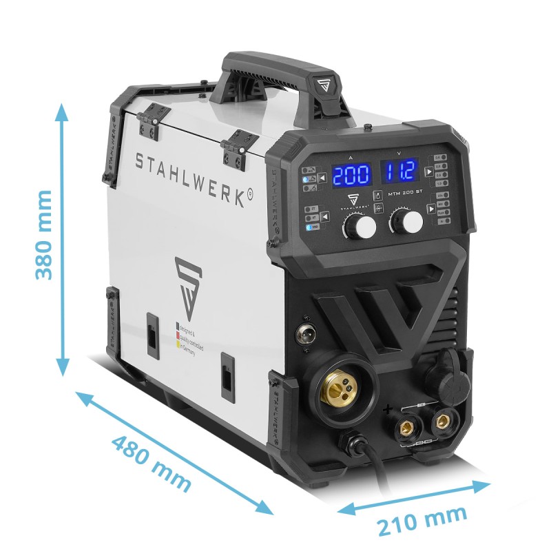 Комбинированный сварочный аппарат STAHLWERK MTM-200 ST — это мощный инверторный аппарат 3-в-1 на 200 А, объединяющий процессы сварки TIG, MIG/MAG и MMA в одном устройстве. Также подходит для обработки порошковой проволоки и сварки тонколистового металла, но не для сварки алюминия.