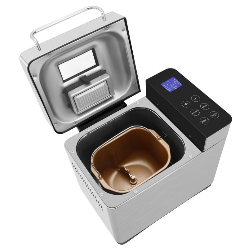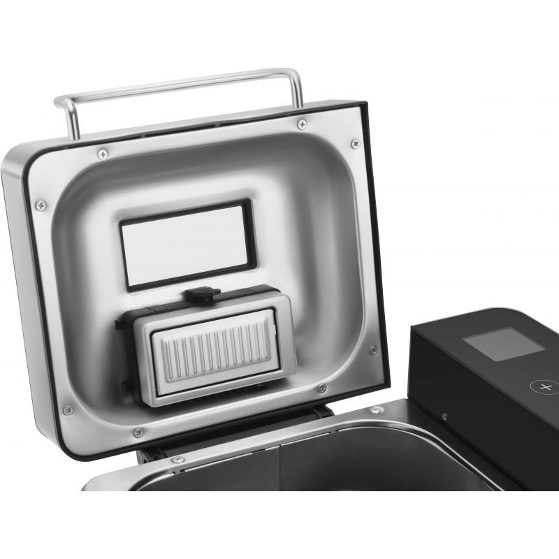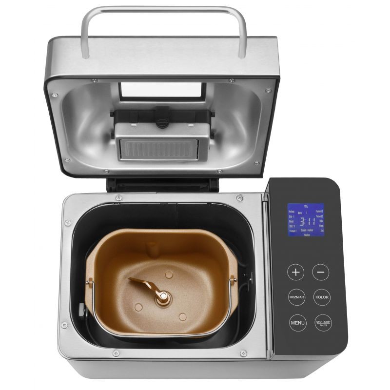 KD4220 оснащена сенсорной панелью управления и ЖК-дисплеем с микрокомпьютерным управлением, что обеспечивает удобное и интуитивно понятное управление. Пользователи могут выбирать из 19 программ приготовления, цвет корочки и размер выпечки 500 г, 750 г или 1000 г. Дополнительные функции включают автоматический дозатор фруктов, внутреннюю подсветку и стеклянное смотровое окно, позволяющее постоянно контролировать весь процесс выпечки. Съемная чаша с антипригарным покрытием облегчает извлечение готового продукта и очистку прибора. Хлебопечка также имеет кнопку паузы.