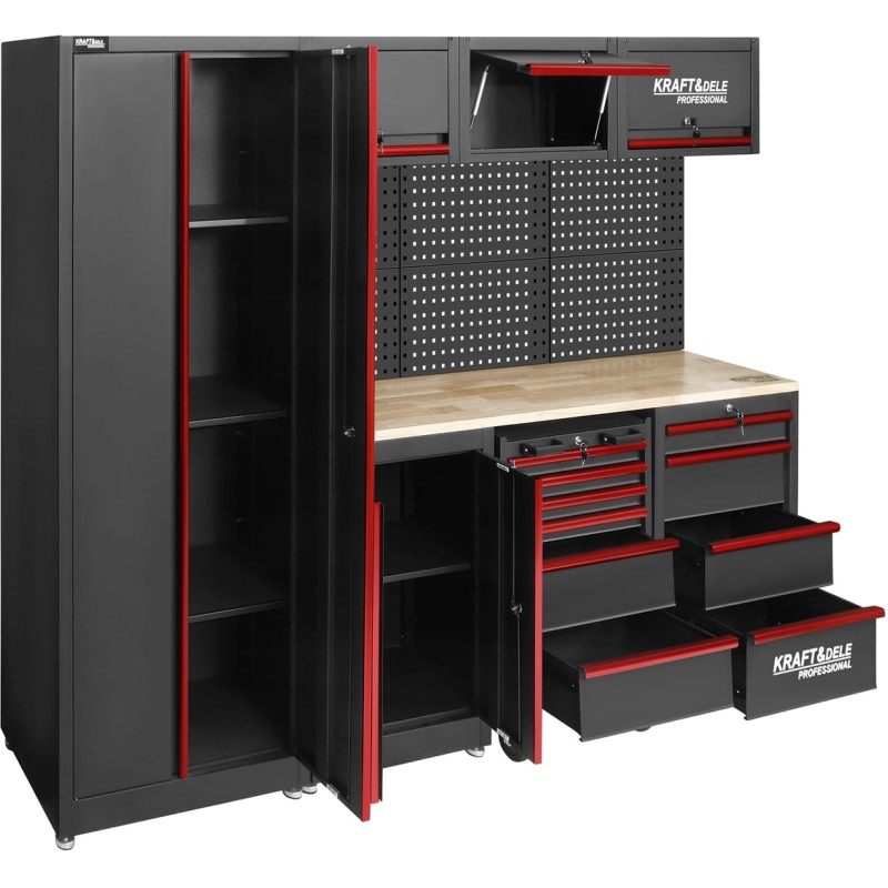 Полный комплект мебели для мастерской KRAFT&DELE KD5860 создан с учетом потребностей профессионалов и взыскательных любителей самостоятельного ремонта. Эта просторная и функциональная рабочая станция предлагает достаточно места для инструментов, принадлежностей и деталей, обеспечивая отличную организацию и комфорт во время повседневной работы.